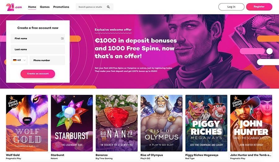 As promoções que você encontrará em 21 são as habituais, incluindo um bônus de boas -vindas, recargas diárias e semanais e torneios. Para ser sincero, 21 têm toneladas de bônus realmente suculentos e promoções extras. Vamos verificá -los com mais cuidado.