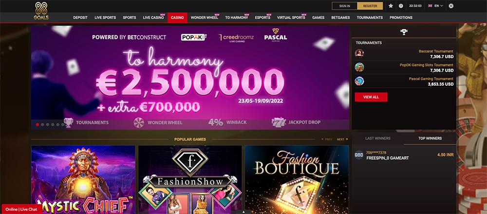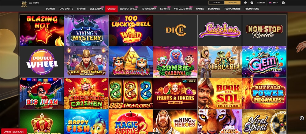 - Jogos: Bingo, jogos de cartas, esports, jackpots, cassino ao vivo, slots, sportsbook e esportes virtuais