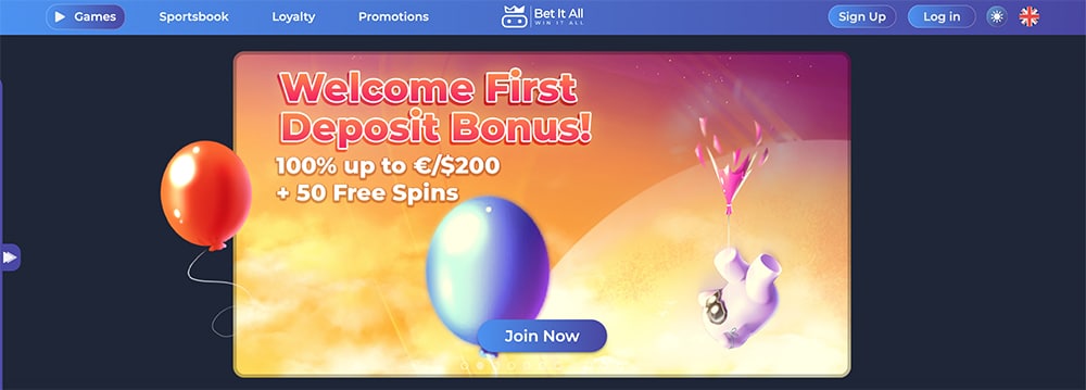 O cassino dá 100% até € 200 + 50 giros grátis.