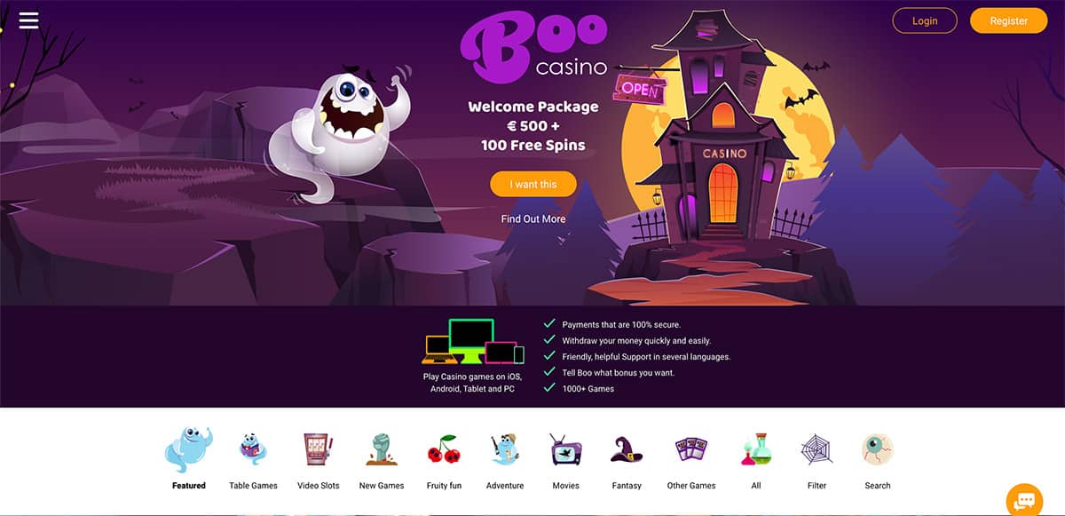Boo Casino - pode parecer um pouco assustador. No entanto, não é, o cassino é uma jóia real para todos os jogadores sérios. Possui muitos métodos de pagamento e muitos jogos de primeira linha dos melhores desenvolvedores de jogos de cassino. Mas não coloque todos os ovos aqui, melhor verifique o que o Casino-Portugal preparou para você nesta revisão do Boo Casino.