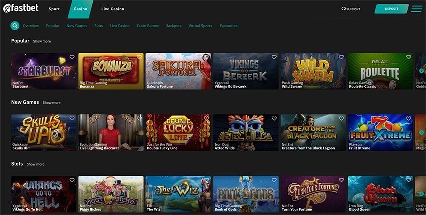 Em segundo lugar, o Fastbet Casino tem uma ótima interface de usuário. O site é muito fácil de usar, tudo está a poucos cliques de distância. Selecione uma das muitas categorias de cassino ou apenas digite o jogo que você deseja jogar e depois de alguns segundos aproveite os resultados. O site não está sobrecarregado com muitas cores e outros elementos brilhantes; portanto, tudo se move ao redor da experiência de jogo e do jogo mais agradável.