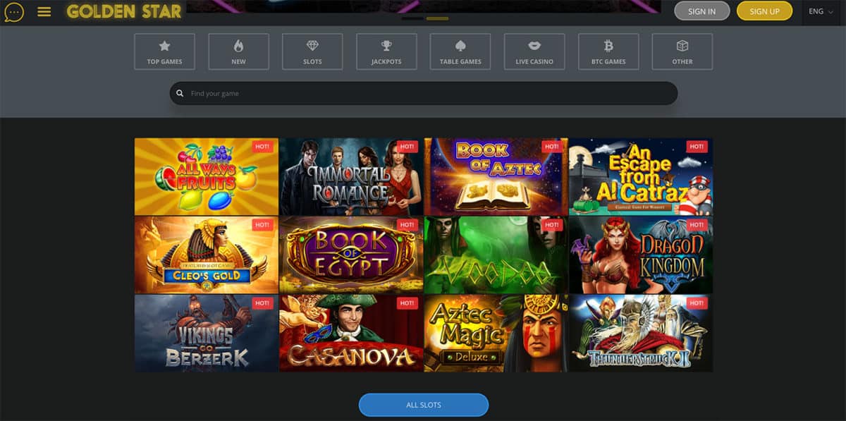 O Golden Star Casino reuniu muita experiência desde 2012. Isso garante sentir apenas a melhor experiência. Adoramos a enorme lista de jogos disponíveis. Você precisa de muito tempo para testar todos os slots e outros cassinos ao vivo ou videogames. Além disso, a seleção de métodos para depósitos e retiradas é gigante.