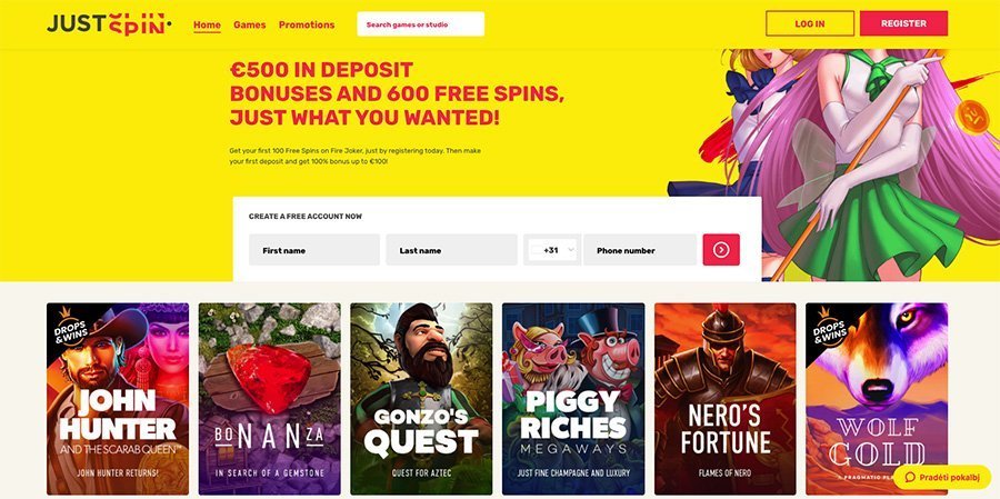 Quanto ao maior deles, é uma combinação de rodadas gratuitas e um reembolso dado antes e nos seus quatro primeiros depósitos no cassino. Ao se inscrever, o Justspin dá aos jogadores 100 rodadas grátis e o restante é dividido em seus depósitos. No total, porém, os jogadores são elegíveis para um dinheiro de bônus de US € 500, além de outras 500 rotações gratuitas no Super Joker.