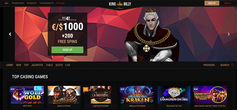 Talvez o método mais popular no iGaming, o rei Billy seja apoiado por uma variedade de provedores de software de primeira linha. Os nomes incluem jogadores como Betsoft, Evolution Gaming, Microgaming, Elk Studios, Netent, Pragmatic Play, Rick Spin e alguns outros. No total, os estúdios fornecem títulos em três gêneros de jogos, slots de vídeo, jogos de mesa e cassino ao vivo.