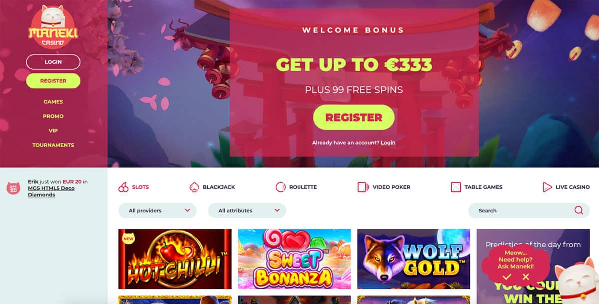 Maneki é um novo cassino online - foi aberto em 2019. Além disso, possui uma licença MGA que acrescenta muitas relações de confiança. Com bônus generoso, vale a pena verificar o cassino online.