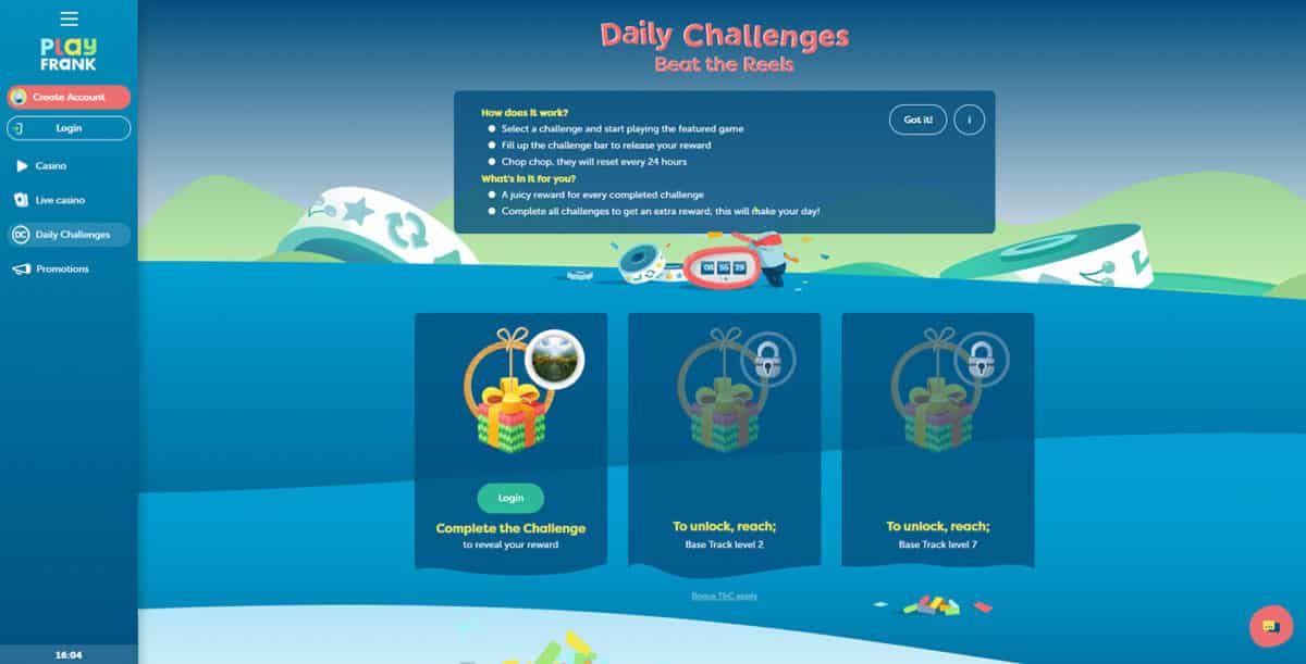 As faixas são outro ótimo recurso neste cassino. Basta jogar seus jogos favoritos normalmente e obter recompensas.