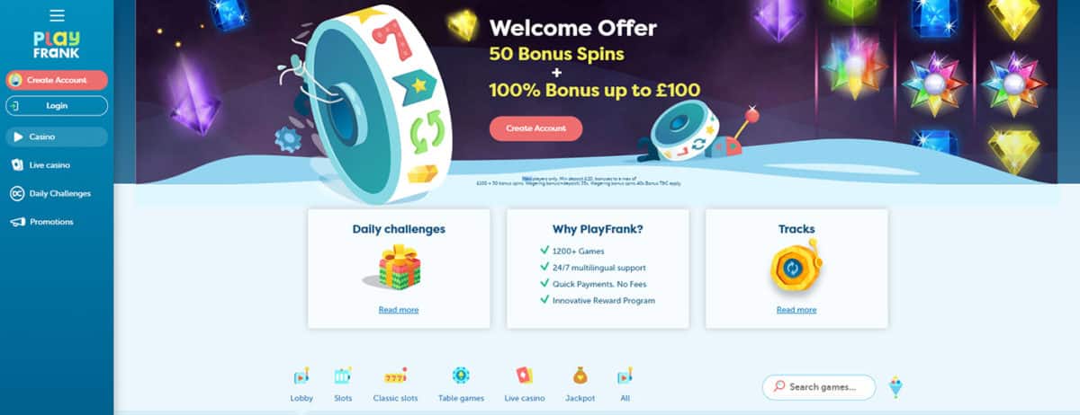 A PlayFrank oferece um pacote de boas -vindas realmente generoso para todos os novos jogadores. No entanto, seu tamanho depende do país, então dê alguma atenção aqui. Os moradores do Portugal recebem uma oferta um pouco diferente do resto dos europeus.