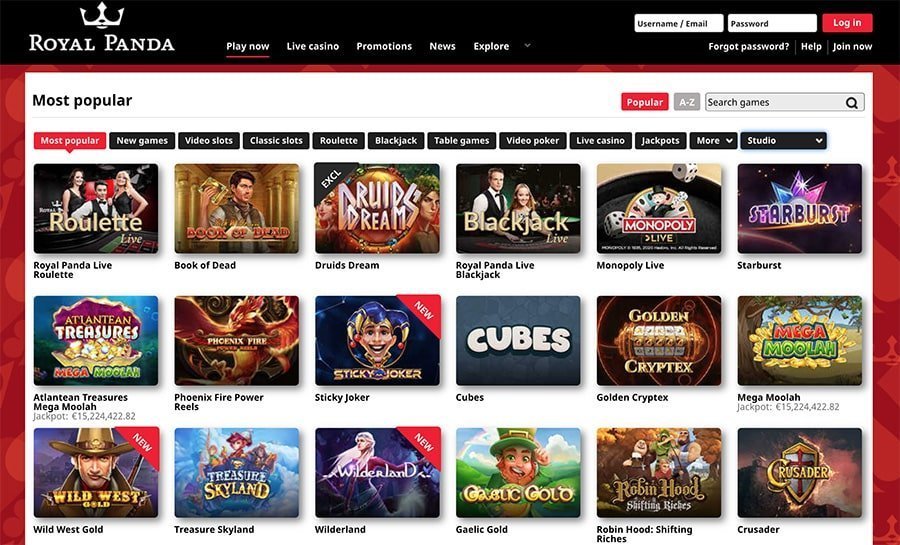 Royal Panda recebe seus jogos de provedores de software como Microgaming, Netent, Gaming Evolution, NextGen Gaming, Rabcat, Thunderkick, Elk Studiose peça pragmática. As categorias de jogos esperadas são slots, cassino ao vivo, jogos de mesa e jackpots.