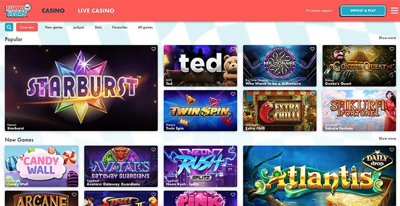 Aqui está a parte em que Turbovegas fez um bom trabalho. Oferece muitos jogos que vêm de excelentes fornecedores. Só para citar alguns - BETSOFT, Elk Studios, Netent, Playson, Quickspin, Rabcat, Microgaming e muitos outros. A seleção é realmente incrível. Para ser sincero, Turbovegas tem uma das melhores seleções suaves para jogos. Por que você pode perguntar? Bem, há uma mistura de criadores grandes e alguns menores, mas, em geral, permite encontrar qualquer estilo, RTP e jogo de tipo.