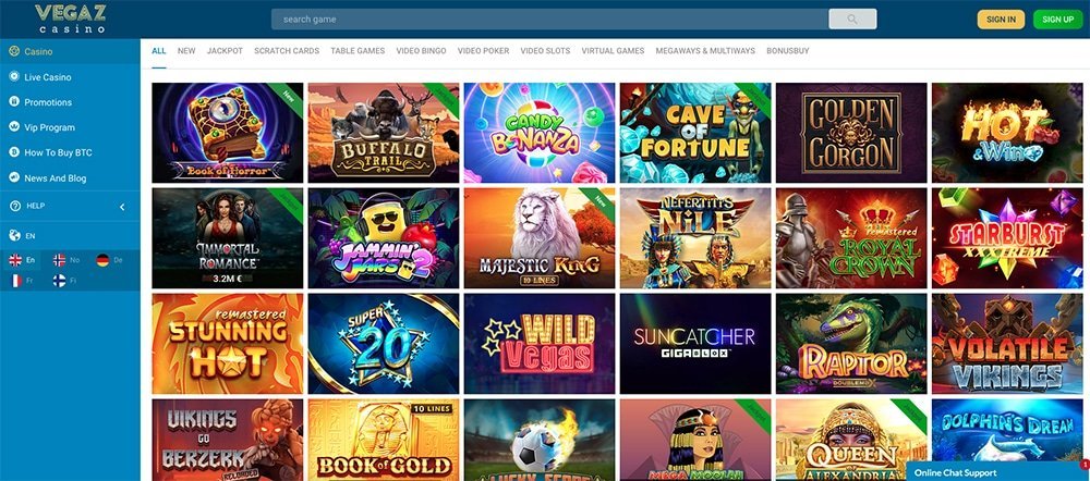 Além dos slots anteriores mencionados nesta revisão do Vegaz Casino, descobrimos uma seção separada para slots de meagaways e multi -via. Títulos como o Quest Megaways de Gonzo, o Super Wild Megaways e o Atlantis Megaways proporcionarão uma experiência única. Além disso, há uma página separada para todos os slots de compra de bônus também.
