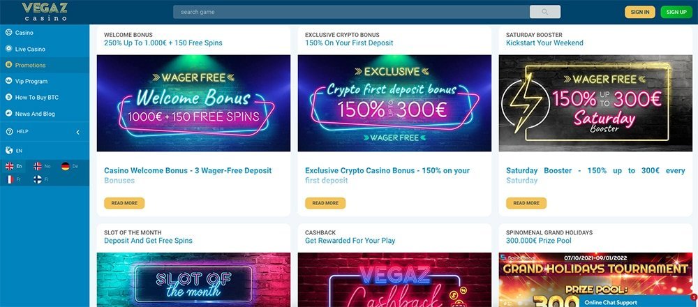Além de fornecer um generoso pacote de boas-vindas para seus jogadores, o Vegaz Online Casino também tem algumas outras promoções na loja. Do reembolso aos bônus de criptografia, há uma exibição decente de opções disponíveis. Você também pode participar de torneios que fornecem prêmios doces em dinheiro.