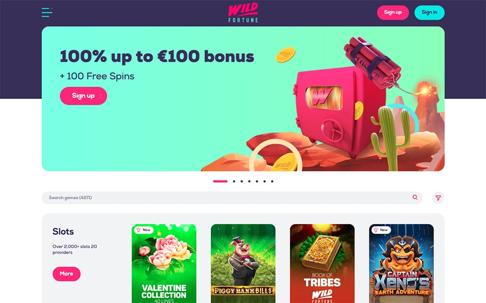 O cassino dá 100% até € 100 + 300 giros grátis.