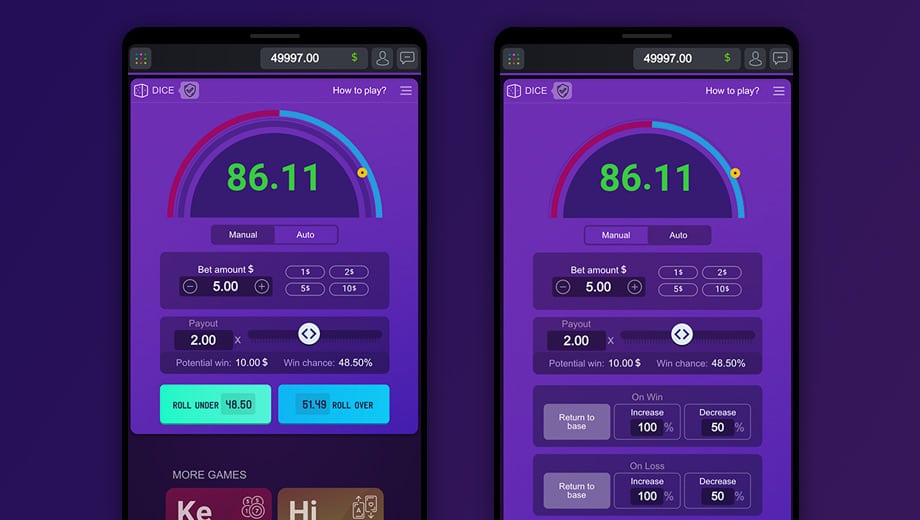 DICE SPRIBE é outro jogo comprovadamente justo do menu do provedor e tem um RTP de 97%. Ele suporta desktop, tablet e jogo móvel. Este jogo simples oferece o controle total dos pagamentos e do risco que você está disposto a seguir. Os pagamentos variam de 1,10 a 970 massivos. Dependendo do que você escolher, suas chances de vitória também variam.