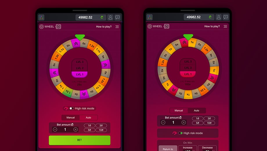 Uma rotação do Roda da fortuna Spribe Pode fazer com que você ganhe massivos de 100x sua aposta inicial. Sendo o rei de jogos simples e emocionantes, Spribe ganhou o jackpot com sua roda da fortuna, que é basicamente uma roda de jogo da fortuna. Este título possui um design elegante e tema roxo/vermelho. O aspecto principal é a roda que inclui vários slots, cada um escondendo algo interessante para você. Naturalmente, você pode não ganhar nada, perder sua aposta ou aumentar sua aposta inicial. Se você deseja alcançar os pagamentos mais altos, o Spribe permite que você mude para o modo de alto risco. Como todos os outros jogos do provedor, este é justo e fornece resultados aleatórios todas as vezes.