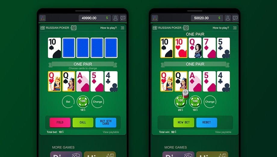 Spribe Poker russo ainda não é outro título do provedor que você deve experimentar. O jogo é como o Texas Hold'em, e é comprovadamente justo. O jogador recebe uma mão e escolhe quais cartas manter. Você pode ficar no jogo, aumentar sua aposta ou dobrar. Se o revendedor tiver uma mão melhor, você perde e vice -versa. É um jogo de poker em ritmo acelerado e bem projetado. Gostamos especialmente dos desenhos dos cartões Jack, Queen e King.