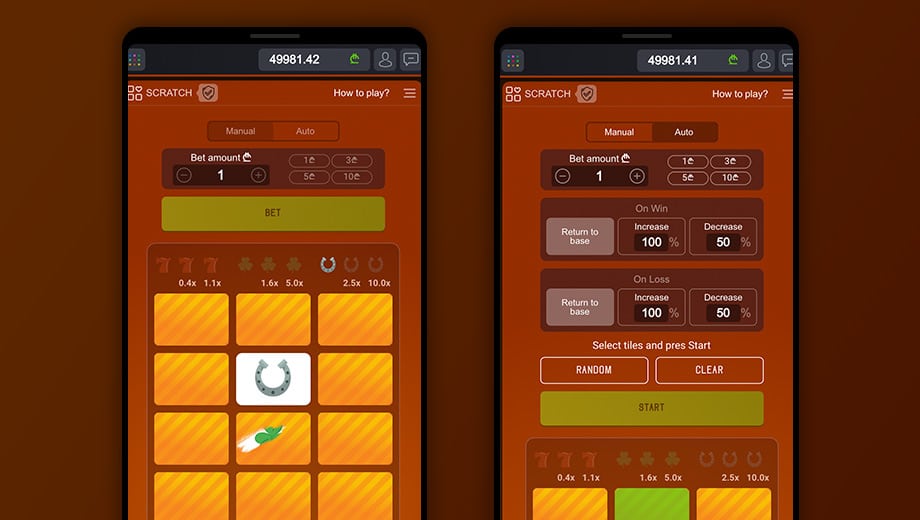 Você simplesmente ama cartas de arranhões? A sensação de emoção correndo em suas veias enquanto você arranha os campos para revelar um prêmio suculento. Bem, certifique -se de tentar Sprible Scratch. O jogo suporta vários valores da aposta, bem como a play automática. Os jogadores podem arranhar os campos que desejam se revelar. Como alternativa, eles podem simplesmente selecioná -los, e o sistema os revelará imediatamente. A grade de jogo é 3 × 4 e existem 3 símbolos diferentes - setes, trevos e ferraduras. Dependendo de quais símbolos correspondentes e, se houver, você revelar, você pode acertar uma boa quantidade de dinheiro.